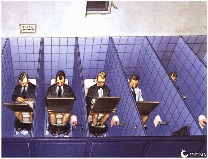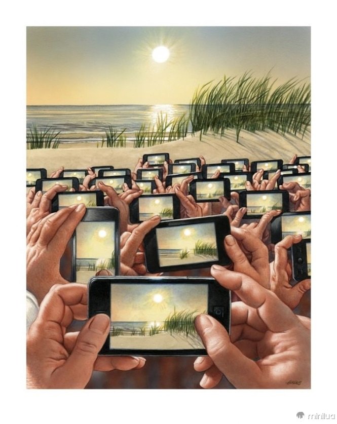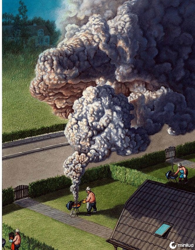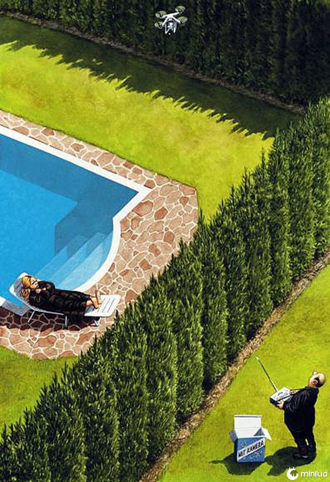 Gerhard continua fazendo seus desenhos sempre mostrando o que ele acha de errado na sociedade moderna.