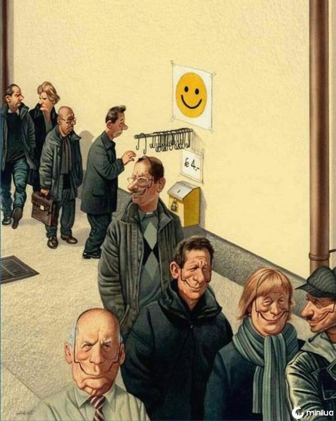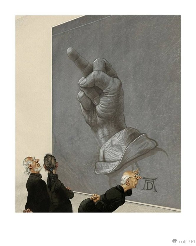 O artista Gerhard Haderer é da Áustria e faz desenhos desde 1985, apresentando realidades que podem ser encontradas no dia-a-dia de muitas pessoas.