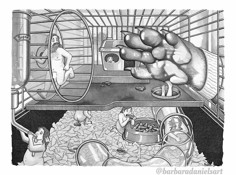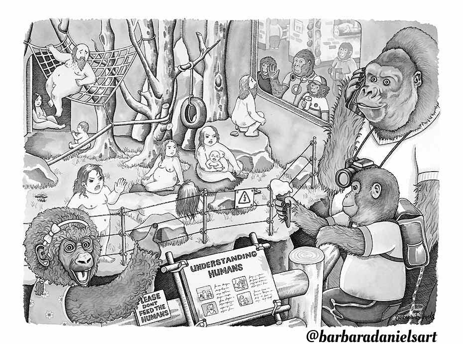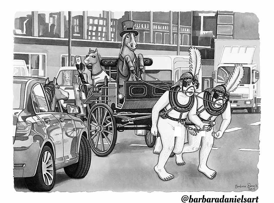 De satisfazer as necessidades básicas ao lazer, os animais não conhecem o descanso no mundo humano. Artista Barbara Daniels está transformando o véu, introduzindo um mundo paralelo onde os papéis humanos reversos com os animais. O que aconteceria se os animais recebessem os mesmos privilégios que nós? Estas são algumas das perguntas que correm na mente quando você passa por essas ilustrações arrepiantes.