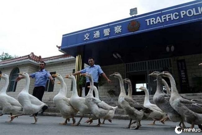 Em algumas partes do país, a polícia optou por usar gansos na área da patrulha. Os policiais alegam que eles possuem melhor visão e um comportamento menos agressivo do que os cachorros.
