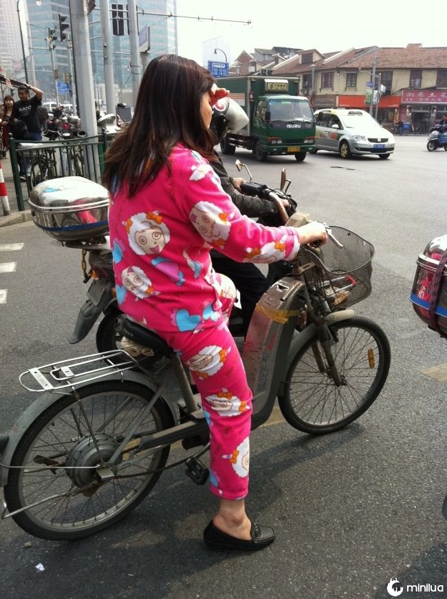 Incomum em outros lugares, na China as pessoas não veem problema em exibirem seus pijamas na rua em um dia comum.