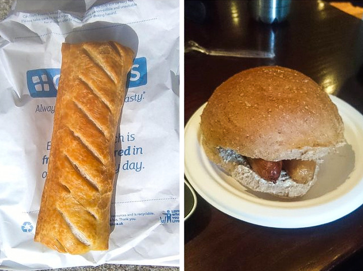 6. "À esquerda, um pão de salsicha, e à direita, como o cozinheiro da lanchonete da minha universidade o vê"