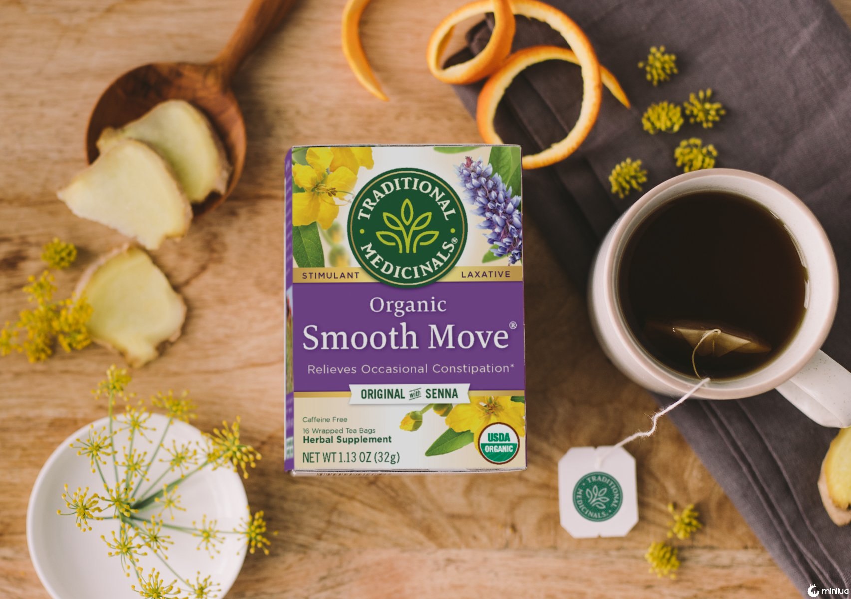O chá Smooth Move é uma mistura de ervas orgânicas comercializadas como um laxante natural. Diz-se que ajuda a aliviar a constipação em 6 a 12 horas. Seu principal ingrediente é o senna, uma planta poderosa nativa da África e da Índia. Suas propriedades laxantes naturais o tornam uma adição popular aos remédios para alívio da constipação. Sennosides, os compostos químicos ativos no senna, fazem com que o intestino se contraia e ajude a aumentar a quantidade de água e eletrólitos presentes no cólon, o que ajuda ainda mais os movimentos intestinais.