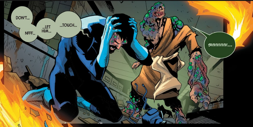 Três desses monges descobriram uma série de túneis e catacumbas onde o vírus foi encontrado. Então, depois de tirar a vida de dois monges, o terceiro saiu e acabou se encontrando no sistema de metrô sob a Yancy Street, Nova York. O monge, chamado Homem da Doença, não perdeu tempo em espalhar o contágio por lá. Mas mesmo depois de derrubar três membros do Quarteto Fantástico e inúmeras outras vidas, a verdade é que ainda não tínhamos ideia do que é esse vírus misterioso no centro das últimas séries de eventos da Marvel.