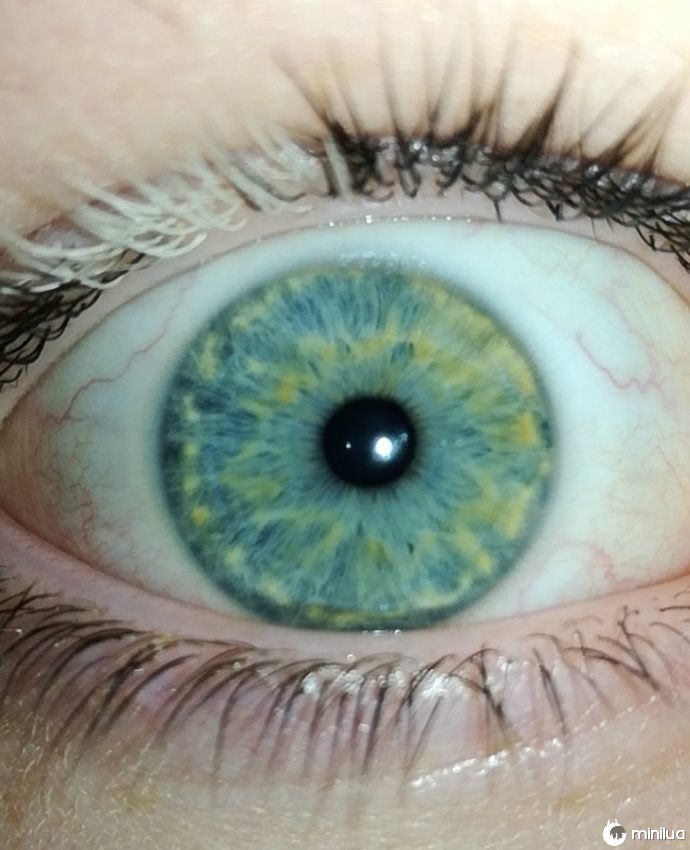 05. Ela possui a íris multicolorida e os cílios em preto e branco