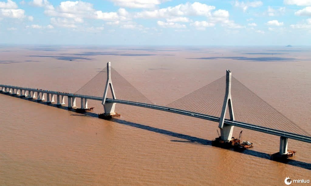 Esta ponte que liga a nova área de Pudong, em Xangai, ao porto marítimo de águas profundas de Yangshan, no leste da China, tem 32,5 quilômetros de extensão, o que a torna uma das pontes marítimas mais longas do mundo.