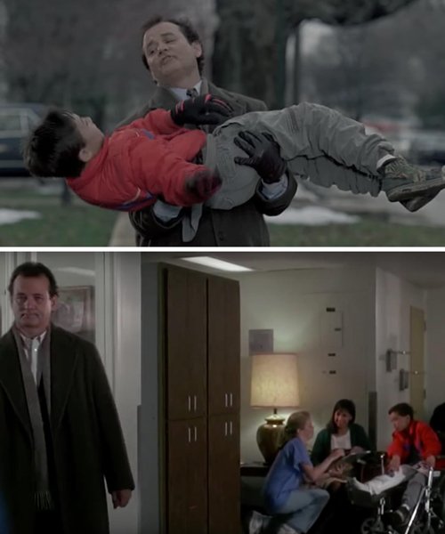 No filme Feitiço do Tempo (1993) você pode ver uma criança no hospital com uma perna quebrada. Esse é o mesmo cara que Phil tem que salvar de cair de uma árvore e ele nunca agradeceu a ele.