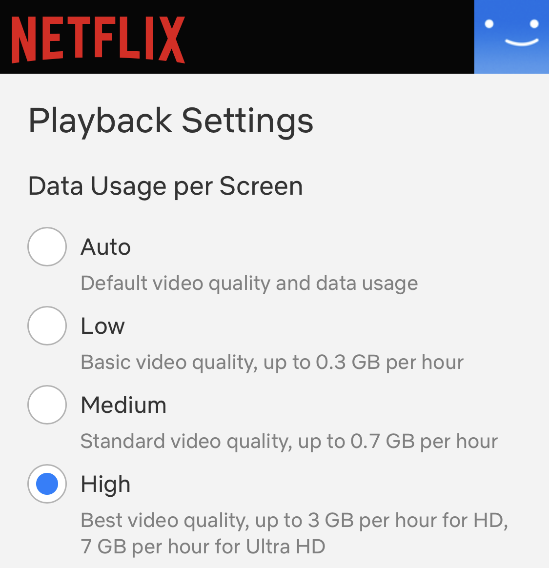 A assinatura padrão permite transmitir em HD, enquanto a assinatura Premium permite transmitir em ~ Ultra HD ~. Para obter a melhor qualidade de vídeo, selecione Alta nas configurações de reprodução