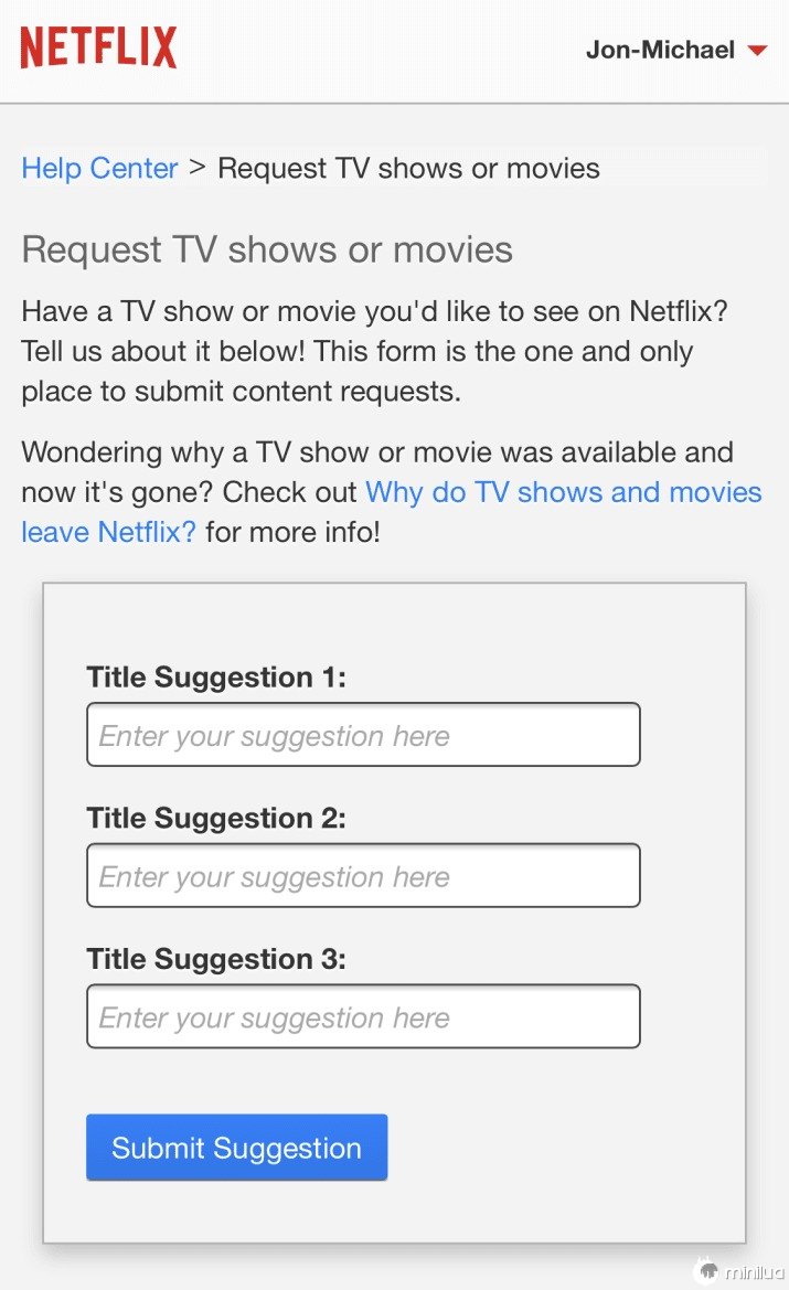 Solicite programas de TV ou filmes que você gostaria de ver no Netflix.
