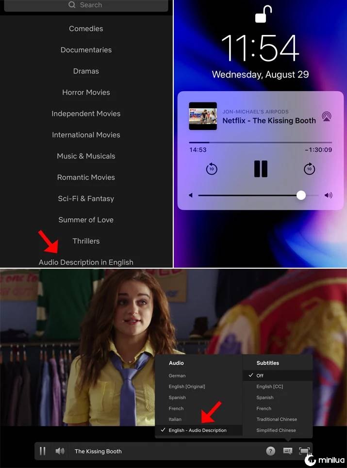 Os usuários do iPhone também podem ouvir a descrição de áudio com a tela desligada. Primeiro, reproduza o título com a descrição de áudio ativada. Em seguida, desligue a tela; isso também desativará o Netflix. Em seguida, ligue a tela novamente e pressione o botão play.