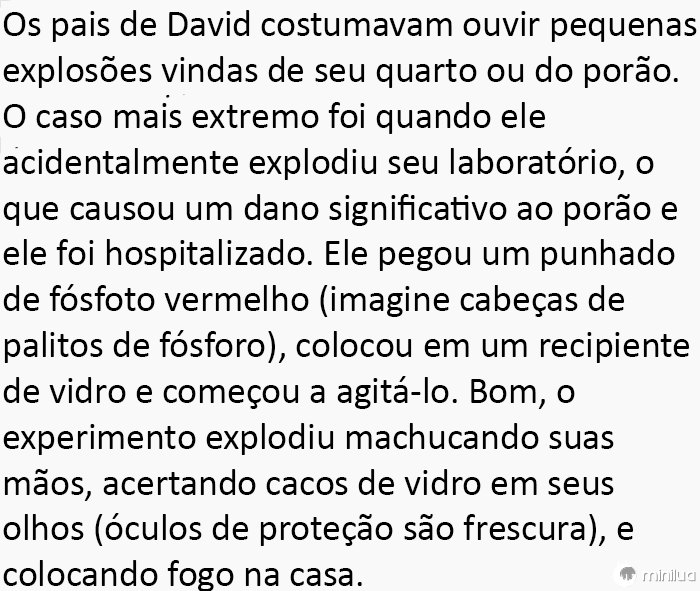 A paixão de David cresceu ainda mais quando ganhou "O livro de ouro dos experimentos químicos" de presente de seu avô.