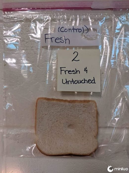 Eles pegaram 5 pedaços de pão, um deles sem ser tocado por ninguém, e os outros com várias circunstâncias, e os deixaram em um saco plástico por alguns dias. Os resultados são realmente surpreendentes.