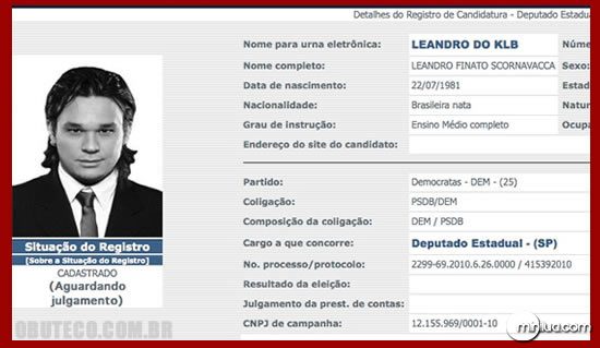 Toda eleição aparece gente de toda parte tentando um "tão sonhado" cargo público. O que muitos não sabem é que uma parte dessa "enxurrada" de gente é composta por famosos, que de repente somem da mídia e não sabemos por que. Confira a ficha de inscrição de alguns famosos para as eleições 2010.