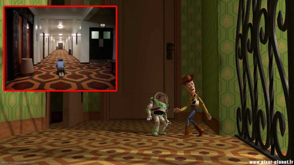 Há uma quantidade surpreendente de referências ao filme de terror " O Iluminado" dentro do filme favorito de todos sobre brinquedos falantes. Além desta imagem assustadora que mostra desenhos de carpete semelhantes, o número 237 também é representado várias vezes em Toy Story . Esse é o mesmo número do quarto mais assombrado do Overlook Hotel.