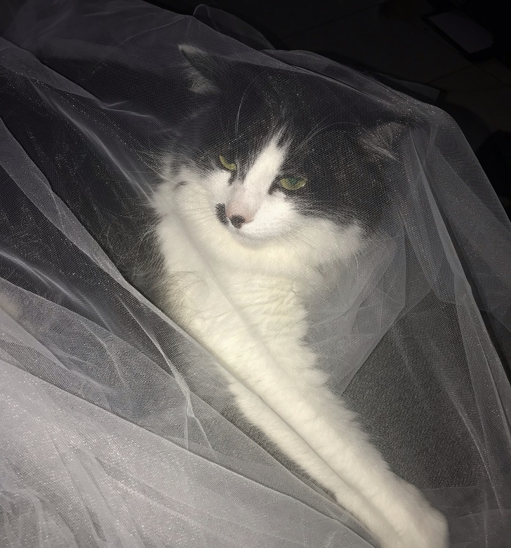 20. "Minha amiga é artista de shows de fogo. Ela pediu para tirar sua foto com o vestido de noiva "