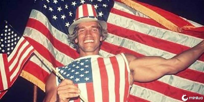 Arnold Schwarzenegger passou a moldar a paisagem da cultura pop americana dramaticamente. Esta foto foi tirada quando ele tinha acabado de receber sua cidadania americana.