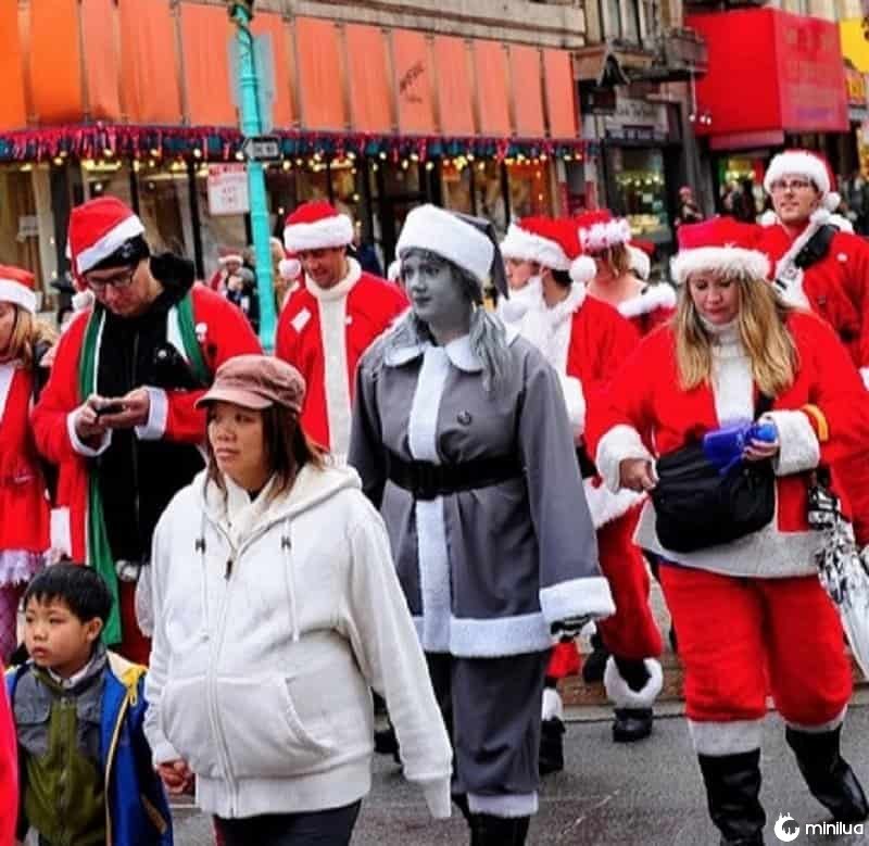 Embora isso pareça uma combinação de algumas fotos, essa foto foi tirada com a maquiagem e a cor do casaco para ter um tema preto e branco. Olhe atentamente para o pescoço dela e você pode ver um ponto onde a maquiagem é removida.