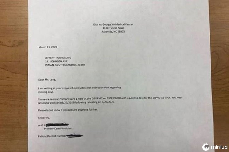 Long, de Inman, na Carolina do Sul, estava trabalhando na Sitel Corporation - um call center no condado de Spartanburg - quando mostrou a seu empregador um atestado médico que alegava ter sido positivo para o coronavírus.