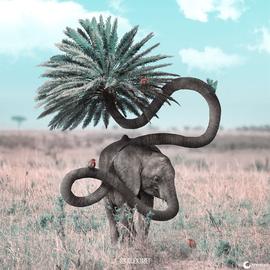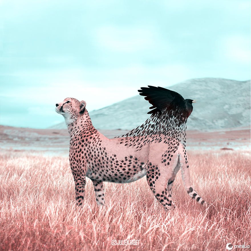 Julien Tabet é um artista francês de 21 anos que cria incríveis imagens manipuladas de animais. Ele começou a criar suas edições há pouco mais de um ano atrás e neste tempo conseguiu o fascinante numero de 95k seguidores no Instagram.