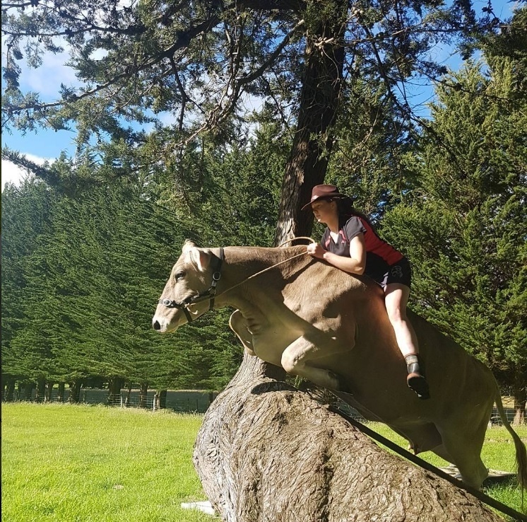 Era o que Hannah Simpson queria, mas essa adolescente da Nova Zelândia conseguiu algo ainda melhor que um cavalo - ela conseguiu uma vaca que salta!