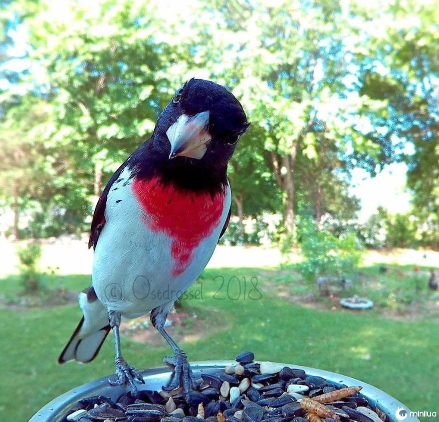 Lisa, conhecida como Ostdrossel nas mídias sociais, é uma amante da natureza e uma ávida fotógrafa de aves baseada em Macomb County, Michigan. Ela montou uma cabine de fotos disfarçada de alimentador de pássaros em seu quintal e às vezes leva até 7.000 fotos por dia!