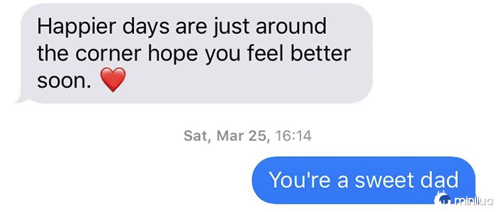 Ela agradece o seu pai amoroso, fazendo-lhe refeições enormes. Com o jantar, o pai está evitando um simples "obrigado" ou qualquer outra coisa que reconheça seus presentes sorrateiros. "Ele simplesmente gosta de tirar as fotos e manda o cara dos óculos de sol".