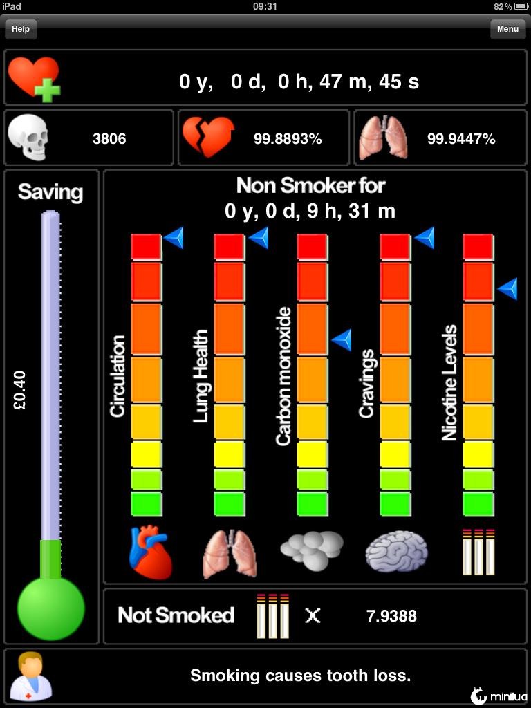O programa garante que dá para fazer mais de 10 leituras diferentes para se manter informado e motivado. Segundo os desenvolvedores, se trata de “uma ferramenta séria que beneficia os anos de pesquisas médicas sobre os efeitos nocivos do tabagismo”.