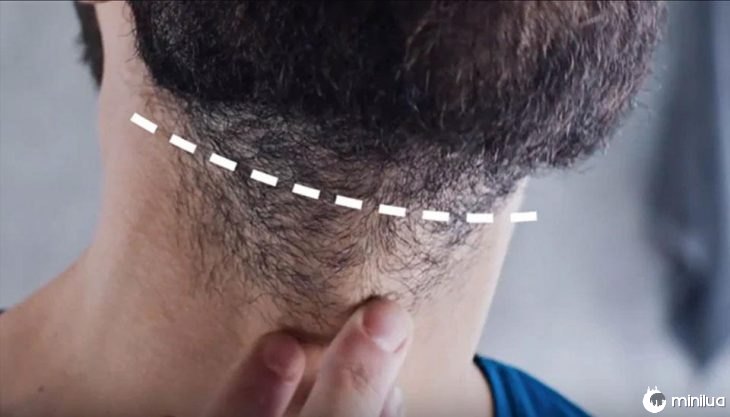 Outra opção é tomar o seu pomo de adão como referência. A linha da sua barba está a dois dedos do centro dela. Como esse método não é muito seguro porque temos tamanhos e dedos diferentes no pescoço, a terceira opção é inclinar a cabeça para baixo para criar um vinco no pescoço, o topo é a linha da sua barba.