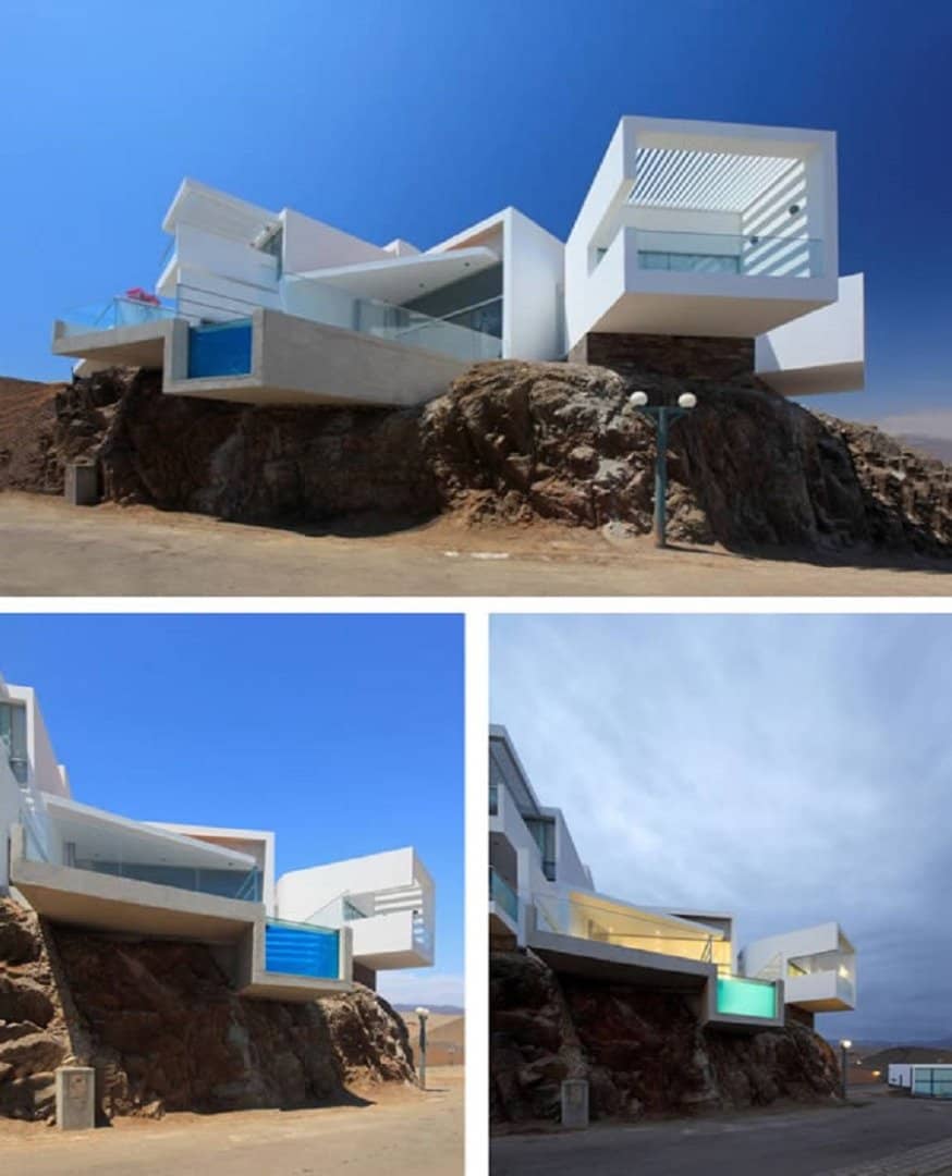 Esta incrível casa de praia foi projetada pela Vertice Arquitectos e é conhecida como Las Lomas. A casa de 240 m quadrados pode ser encontrada em Lima, Peru, e tem uma impressionante piscina suspensa e varanda como parte de suas muitas atrações.