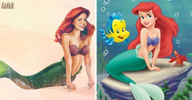 Falando do Disney Renaissance, A Pequena Sereia foi o filme que deu o pontapé inicial. Para seu retrato, Jirka fez o cabelo vermelho, longo e brilhante de Ariel, olhos azuis e cauda de sereia com realismo e detalhes impressionantes.