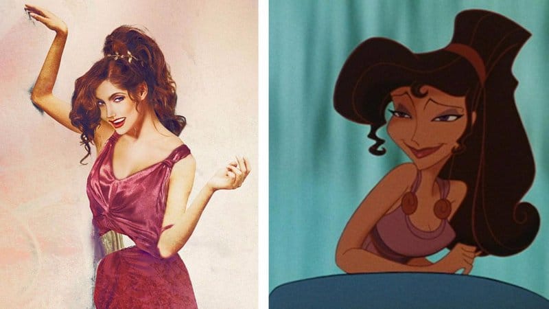 Os personagens de Hércules foram uma partida do estilo “tradicional” de animação da Disney. Veja Megara, por exemplo. Ela tem cabelos grossos, cintura fina, sobrancelhas compridas e uma estatura mais angulosa do que outras princesas da Disney.