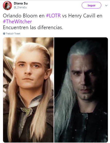 "Orlando Bloom em Senhor dos Anéis vs Henry Cavill em The Witcher... Encontrem as diferenças."
